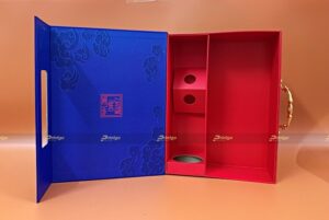 - Gia công: Ép kim và phủ UV họa tiết mặt hộp