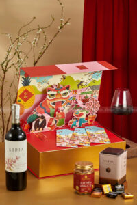 Lấy cảm hứng từ khung cảnh phiên chợ xuân nhộn nhịp, hộp quà Tết Phiên Chợ Tết 3D mang đến một không gian Tết sống động và đầy cảm xúc. Thiết kế popup 3 lớp mở ra bức tranh Tết Việt truyền thống, nơi những hình ảnh quen thuộc như múa lân, ông đồ cho chữ, người dân mua sắm, trẻ nhỏ vui chơi… hiện lên một cách sinh động, vui tươi và gần gũi. Mỗi chi tiết đều được chăm chút tỉ mỉ, từ cấu trúc nắp lật nam châm chắc chắn đến khay rượu cố định, mang đến trải nghiệm mở hộp đầy bất ngờ và ấn tượng.