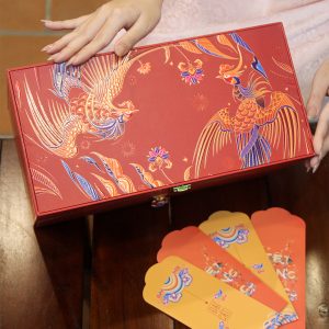 Lấy cảm hứng từ hình tượng phượng hoàng – linh điểu tượng trưng cho sự cao quý, may mắn và phồn vinh, hộp quà Tết Phượng Uyển 2 tầng là bản hòa ca giữa nghệ thuật thủ công tinh tế và tinh thần Tết Việt truyền thống. Hình ảnh phượng hoàng tung cánh được thể hiện sinh động qua kỹ thuật thúc nổi kết hợp UV cát và UV bóng, giúp từng đường nét ánh lên vẻ mềm mại và uyển chuyển trên nền đỏ kiêu sa. Cấu trúc hai tầng được thiết kế vững chắc, hài hòa giữa thẩm mỹ và công năng, mang lại không gian chứa đựng linh hoạt mà vẫn giữ vẻ sang trọng. Điểm nhấn là khóa kim loại và tay cầm tinh xảo, tôn lên nét đẳng cấp của tổng thể, biến Phượng Uyển thành món quà biếu Tết hoàn hảo để doanh nghiệp tri ân đối tác, khách hàng hay gửi gắm tình thân trong dịp xuân mới.
